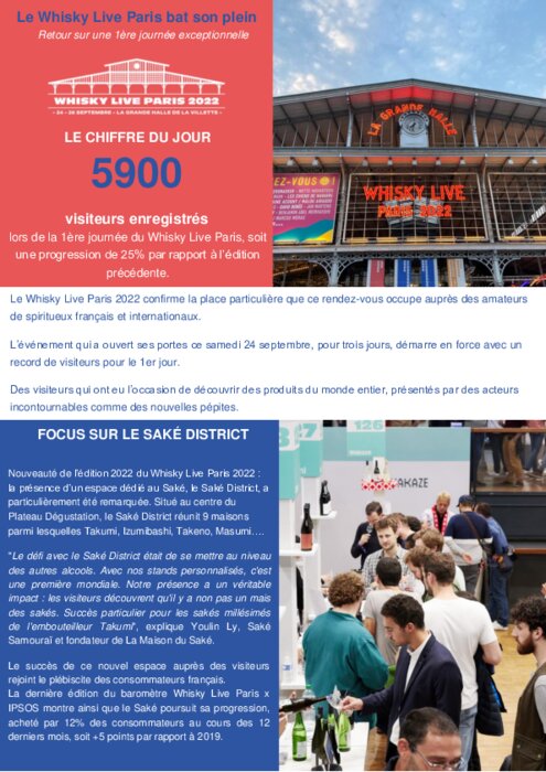 Métiers 25 septembre 2022 - 16:37 Le Whisky Live Paris 2022 confirme la place particulière que ce rendez-vous occupe auprès des amateurs de spiritueux français et internationaux. PDF (598 Ko) Télécharger