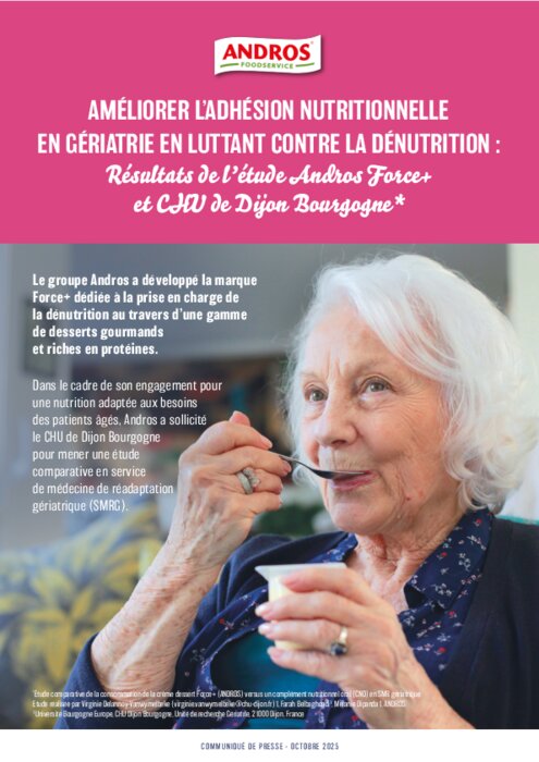 Une étude menée en services de réadaptation gériatriques a comparé l’observance et la consommation entre la crème dessert vanille Force+ et un CNO classique. Menée auprès de 75 patients (âge moyen : 87 ans, 65 % de femmes), l’étude a évalué la consommation des deux produits sur trois périodes de deux jours chacune.