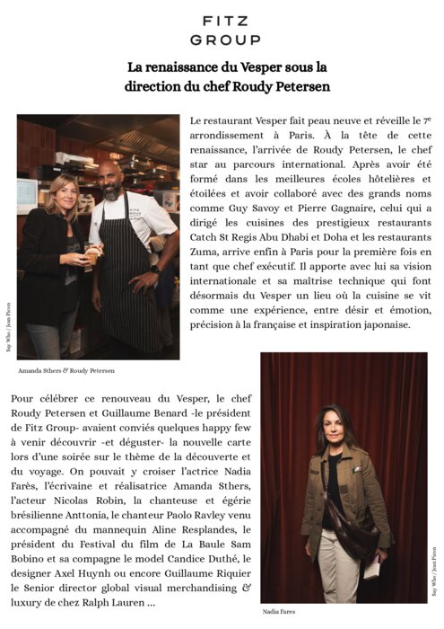 Le restaurant Vesper fait peau neuve et réveille le 7ᵉ arrondissement à Paris. À la tête de cette renaissance, l’arrivée de Roudy Petersen, le chef star au parcours international. Après avoir été formé dans les meilleures écoles hôtelières et étoilées et avoir collaboré avec des grands noms comme Guy Savoy et Pierre Gagnaire, celui qui a dirigé les cuisines des prestigieux restaurants Catch St Regis Abu Dhabi et Doha et les restaurants Zuma, arrive enfin à Paris pour la première fois en tant que chef exécutif.