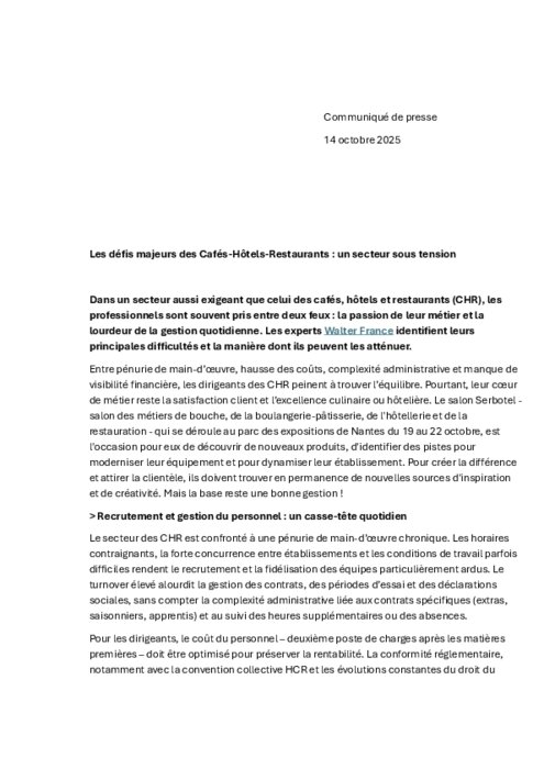 Les défis majeurs des Cafés-Hôtels-Restaurants : un secteur sous tension (Walter France)