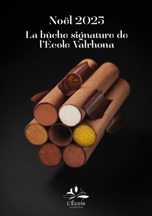 À l’occasion des fêtes de fin d’année, L’École Valrhona dévoile une bûche de Noël exclusive, véritable voyage sensoriel dont chaque saveur réveille les souvenirs d’enfance. Imaginée par les chefs Baptiste Sirand et Yohan Dutron, cette création inédite marie la fraîcheur des agrumes, la chaleur des épices et la puissance du chocolat noir Guanaja 70 %. Une partition de textures gourmandes, jouée comme un hommage, pour célébrer l’anniversaire de l’un des chocolats les plus iconiques de la Maison. Pensée comme une expérience à part entière, cette bûche invite à une dégustation rythmée et émotionnelle, où chaque bouchée révèle une facette différente de l’univers Valrhona.