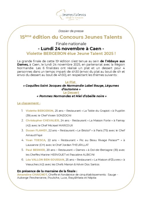 Violette Bergeron élue Jeune Talent Chefs de Demain 2025