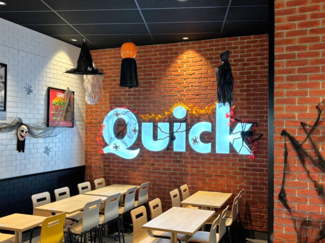 Le nouveau restaurant Quick d’Amiens Nord dispose de 194 places assises, dont 134 en salle et 60 en terrasse. Il affiche le dernier décor de l’enseigne, en phase avec la nouvelle identité de marque. Couleurs vives, panneaux lumineux et néons rouges apportent une signature forte que les amoureux du goût reconnaitront immédiatement. A l’intérieur, murs en briques et matières chaleureuses plongent les fans du Giant dans une ambiance à la fois conviviale et urbaine. Un « Story Wall » illustre les quelques 45 ans d’histoire de l’enseigne, et des cadres disposés dans l’ensemble du restaurant retracent les étapes clés de la vie de Quick.